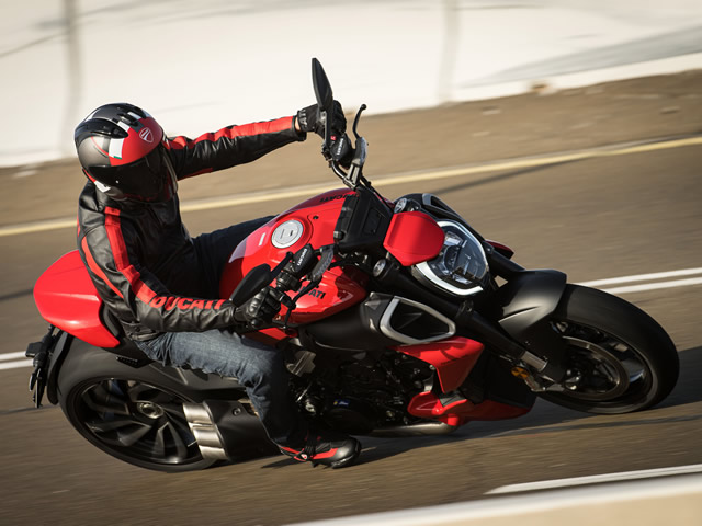 O piloto - que pode desfrutar de um assento baixo (a 790 mm do solo), pedais centrais e guidão alto 20 mm mais próximo do que na Diavel 1260, o que facilita o uso, especialmente ao manobrar - está no centro da moto, com uma posição de pilotagem que também transmite visualmente uma sensação de controle e autoconfiança.