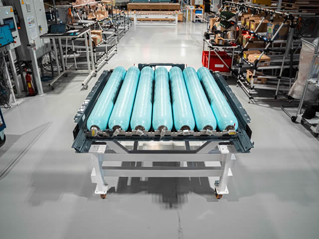 O sistema consiste em sete tanques de alta pressão feitos de compósito reforçado com fibra de carbono, interligados em paralelo e integrados a uma estrutura metálica. O que torna o design especial é que, em vez de vasos de pressão individuais, há várias câmaras conectadas que formam uma unidade fechada. Uma válvula controla a principal, a central.